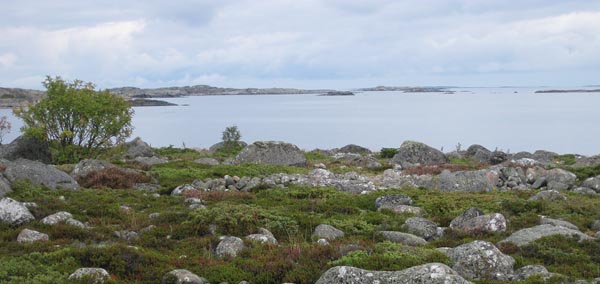 Utön länsikärjessä on karu riutta, jonka jälkeen aukenee meri.