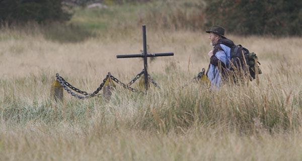 Saksalaissotilaan haudalla. Utön pitkä historia liittyy paitsi luotsitoimintaan myös moneen eri sotaan. Utön hautausmaa on rauhallisella nummella kauniisti lainehtivan heinikon keskellä.