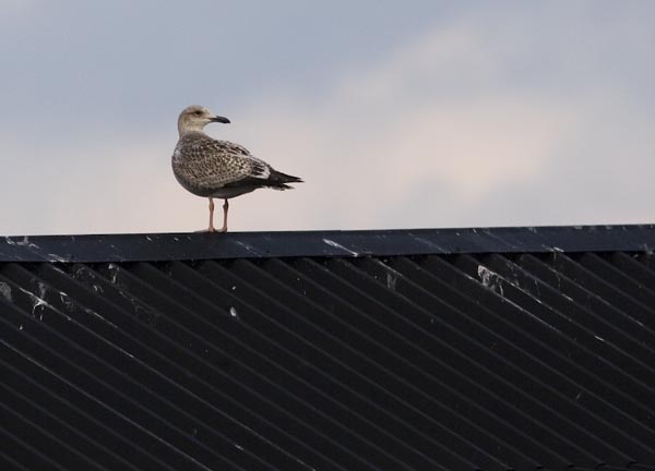 Utön satamassa oli lokkeja kala-apajilla. Kuvassa nuori harmaalokki. Satamassa hengaili myös selkä-, meri-, kala- ja naurulokkeja.